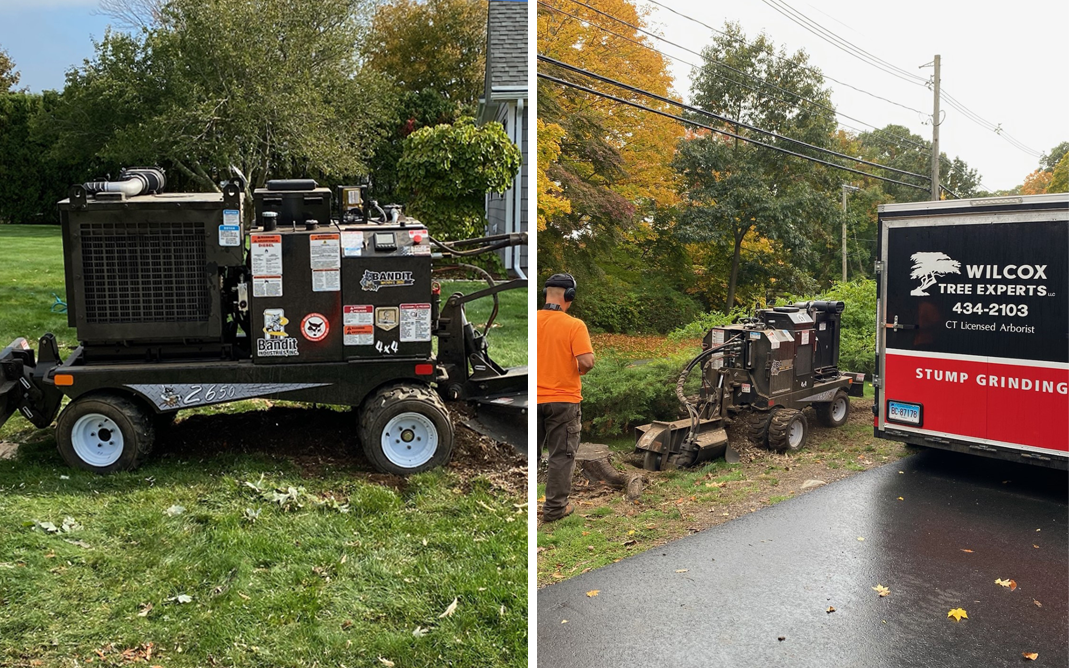 Stump Grinding: We grind the stump down below the surface, allowing you to replant or landscape over the area.